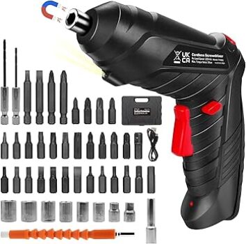 Leistung & Drehmoment: Liefert eine maximale Drehzahl von 250 Umdrehungen pro Minute für kleine tägliche Arbeiten. Akkulaufzeit & Ladeoptionen: Lässt sich über den praktischen USB-Ladeanschluss innerhalb von 2-5 Stunden aufladen. Funktionen & Einsatzbereich: Lässt sich durch das Umstellen von Vor- und Rücklauf einfach bedienen. Ergonomie & Bedienkomfort: Besitzt eine eingebaute LED-Beleuchtungsfunktion zur Ausleuchtung dunkler Ecken und Arbeitsbereiche. Zubehör & Flexibilität: Wird mit einem großen 25-teiligen Zubehörset geliefert und ist somit für alles gewappnet.