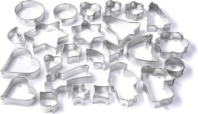 Set-Zusammensetzung & Formenvielfalt: Beinhaltet 25 klassische Ausstecher für diverse Anlässe (Stern, Tannenbaum, Schneemann, Ente, Herz etc.) in Größen von ca. 3,0 bis 7,0 cm.