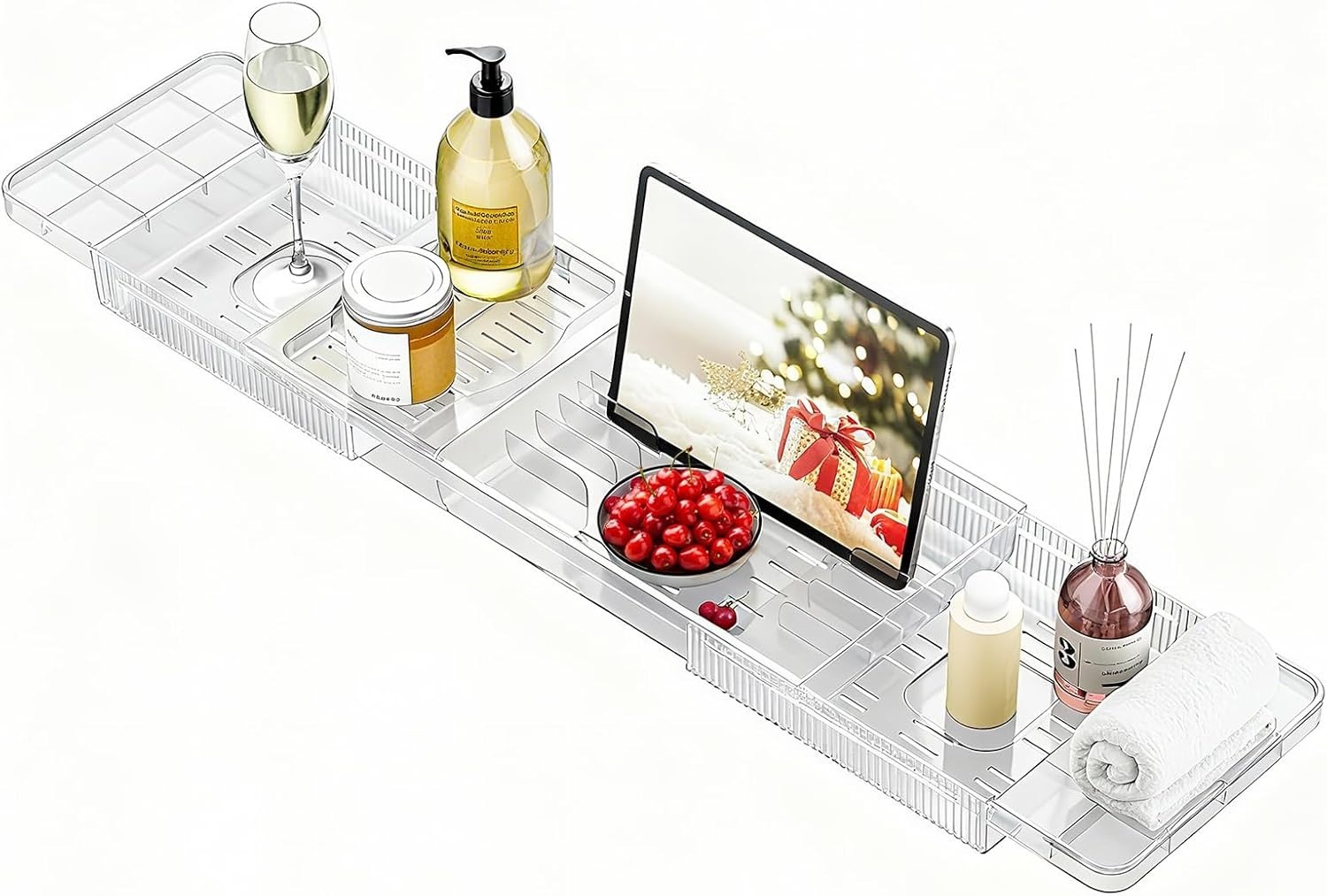 Funktion & Ausstattung: Verfügt über maßgeschneiderte und sichere Halterungen für Ihr iPad, Weinglas, Kerze, Telefon und andere wichtige Bad-Accessoires.