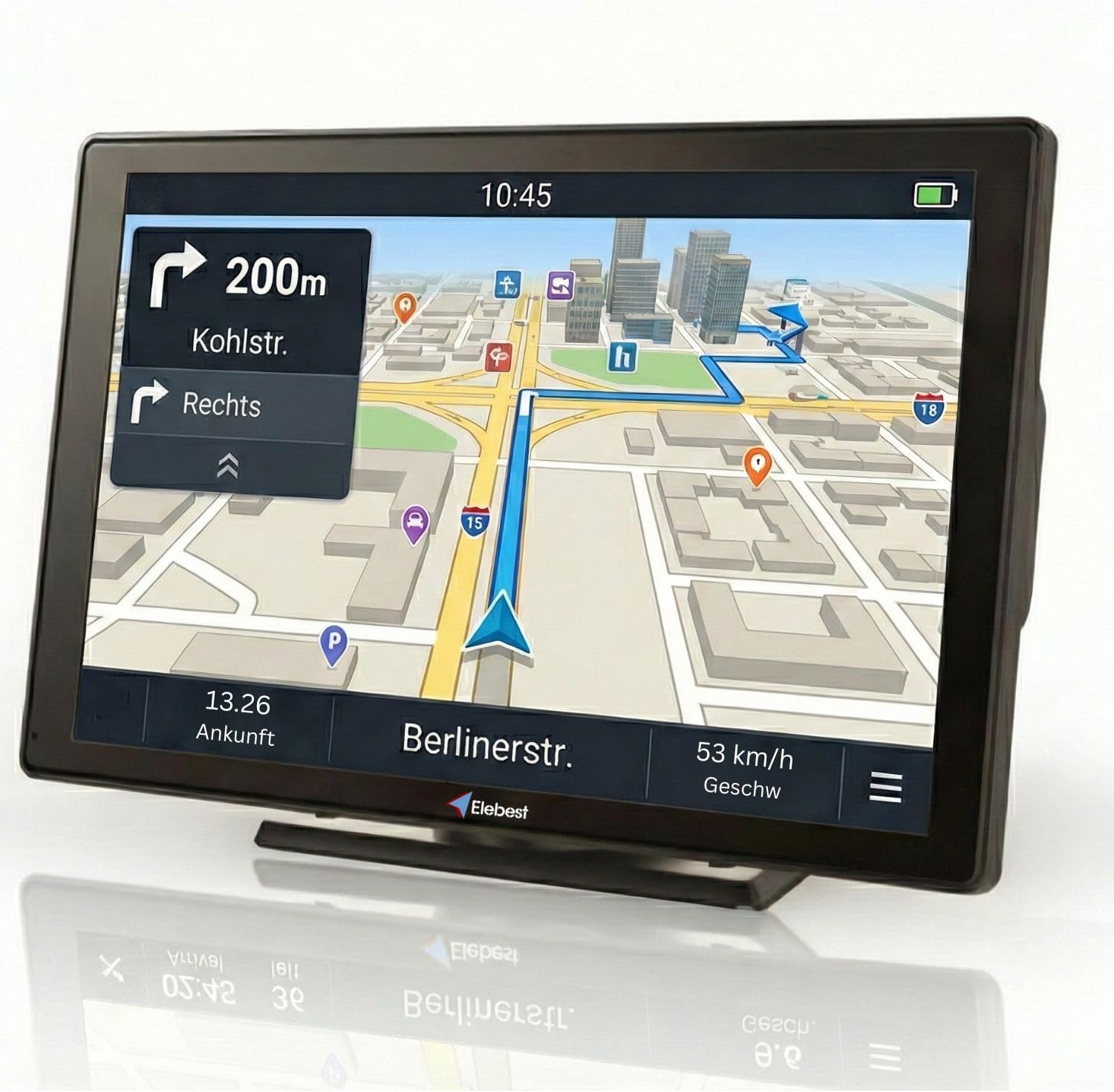 Funktionen & Konnektivität: Unterstützt Postleitzahlsuche und 2D/3D-Karten.