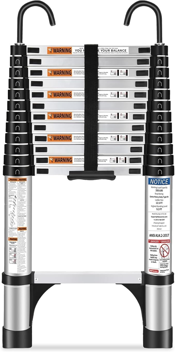 HBTower 3,8m Teleskopleiter Aluminium mit Haken