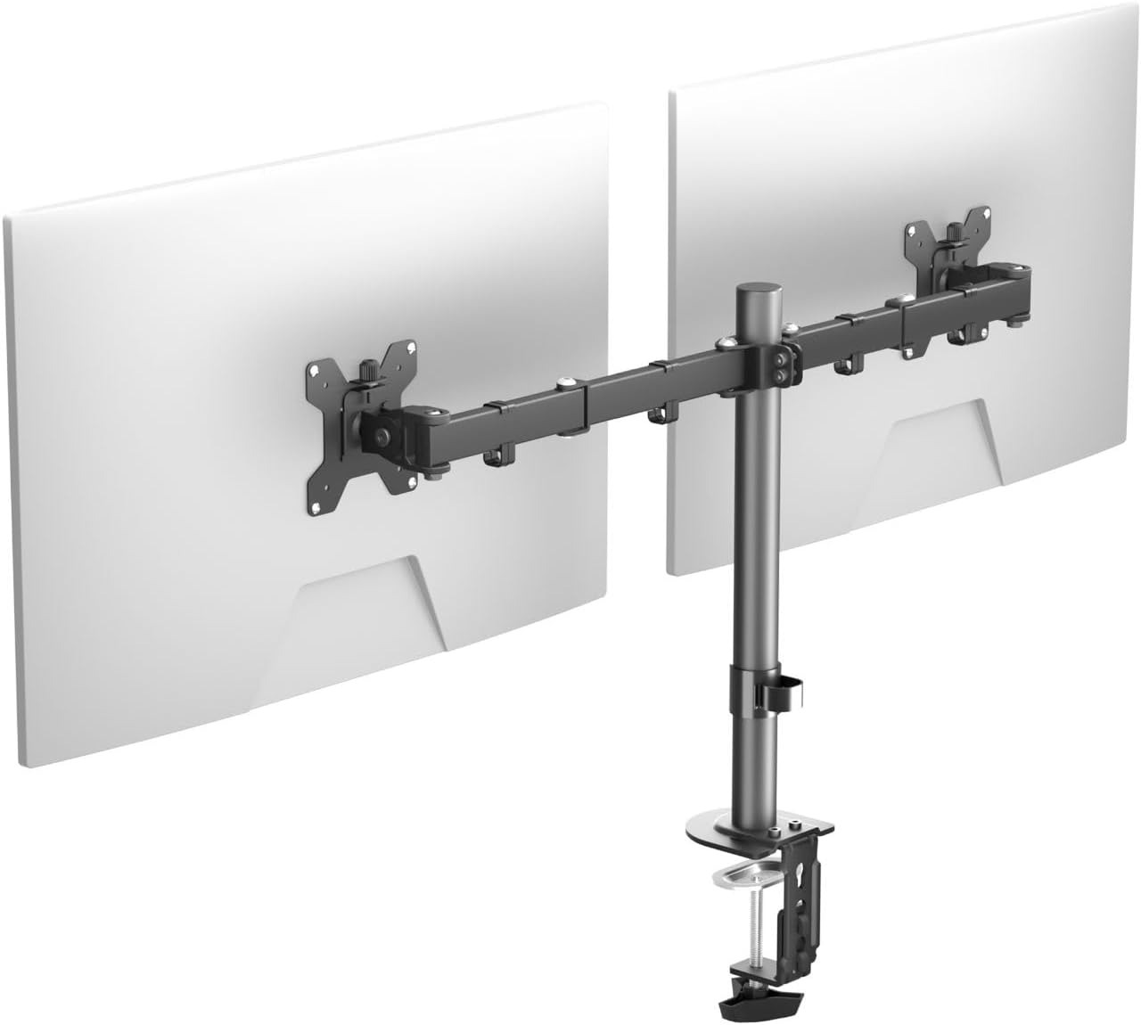 Kompatibilität & Tragfähigkeit: Hält zwei Monitore bis 8kg.Verstell- & Bewegungsmöglichkeiten: Ist separat höhenverstellbar und schwenkbar.