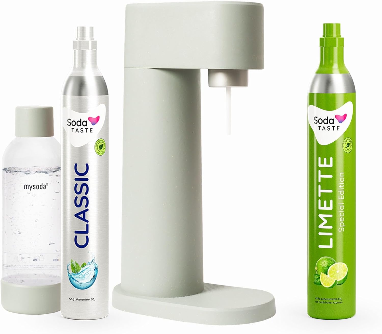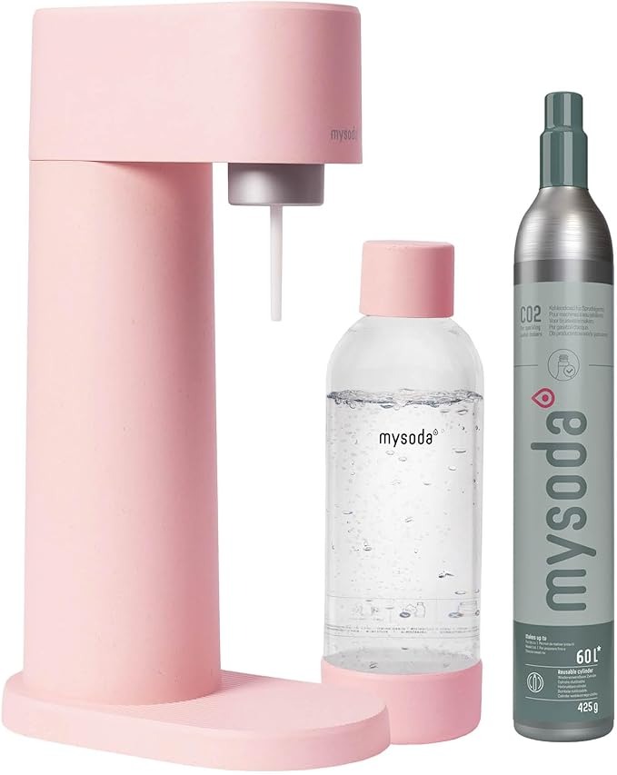 Leistung & Sprudelmechanik: Leiser Betrieb, kein Stromanschluss nötig.Flaschen & Materialien: Über 99% erneuerbares Biokomposit.