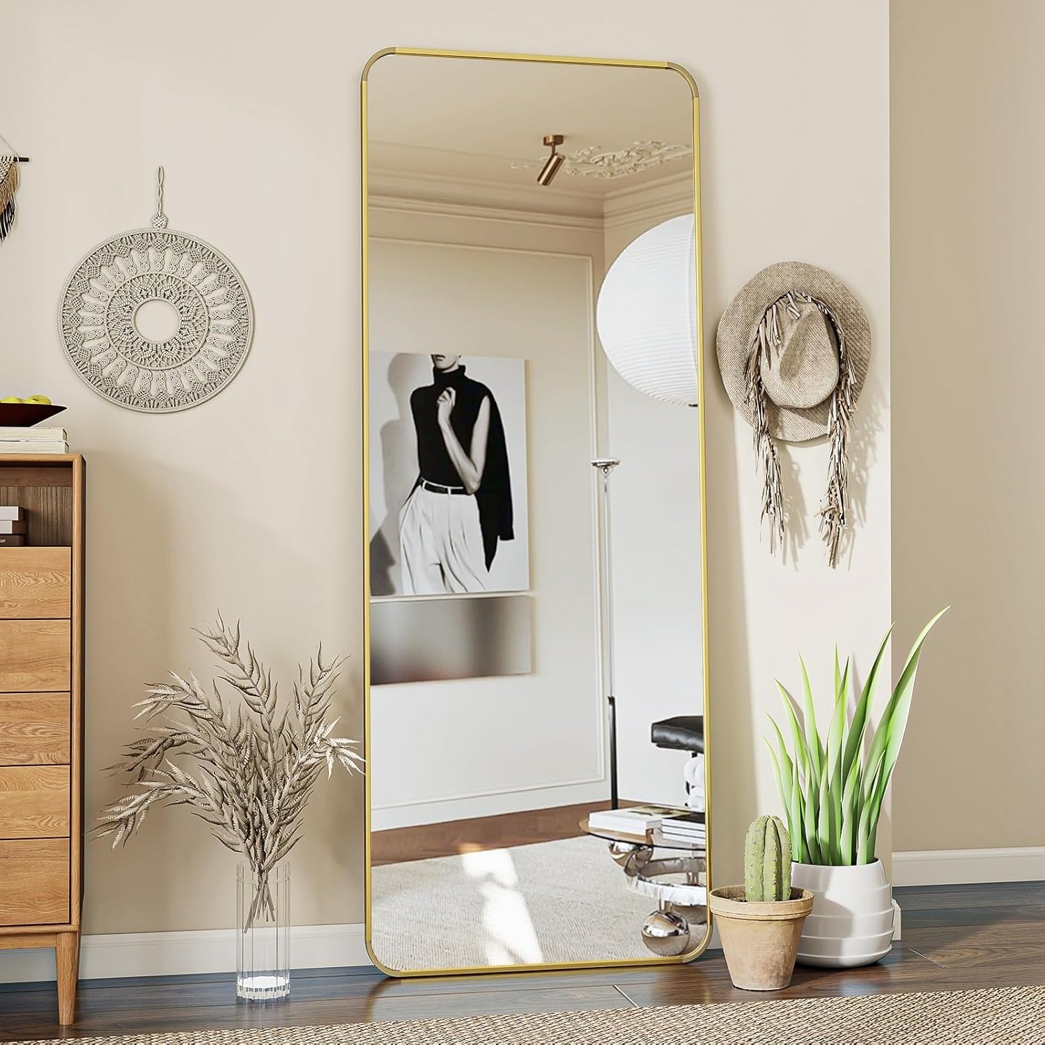 Abmessungen & Formgebung: Ganzkörperspiegel mit abgerundeten Ecken.Intelligente Beleuchtung: Verbessert Raumwahrnehmung durch Licht.